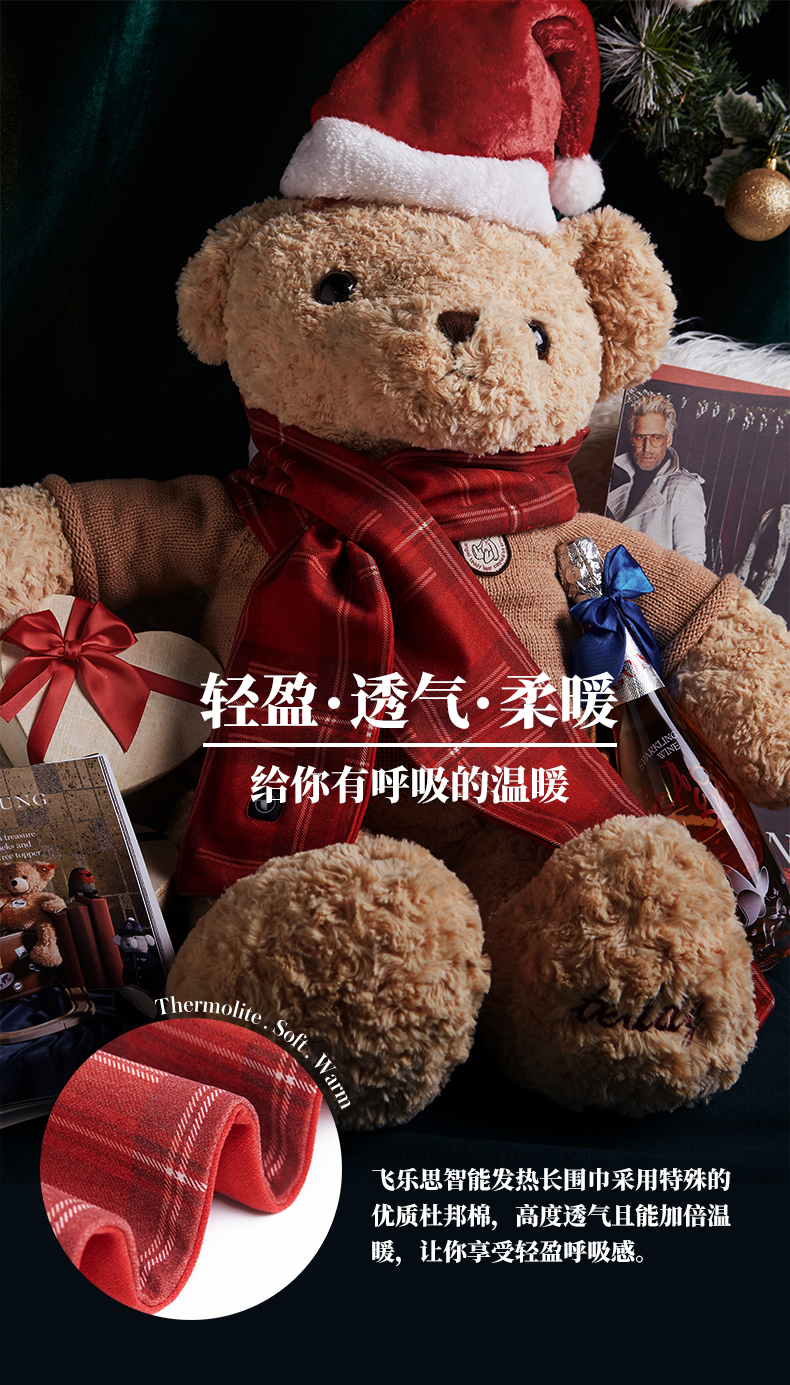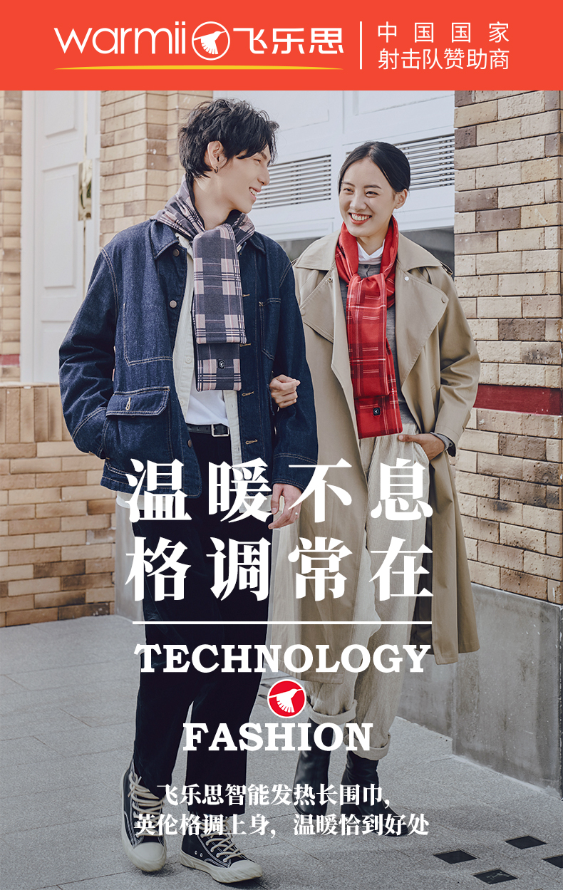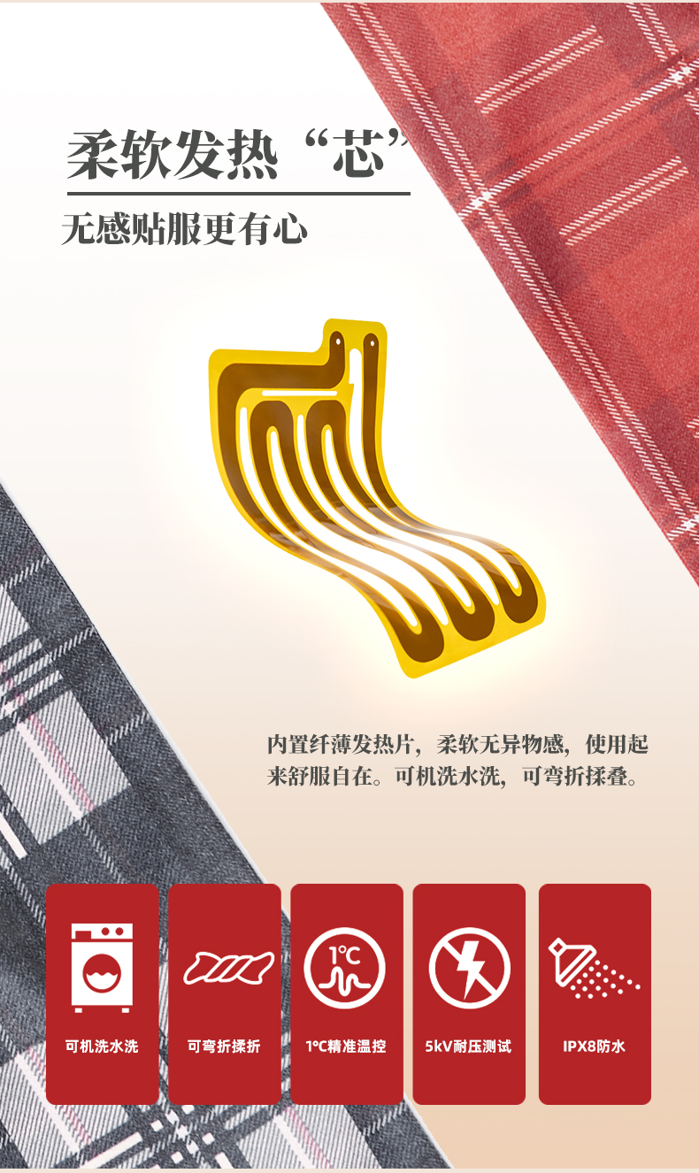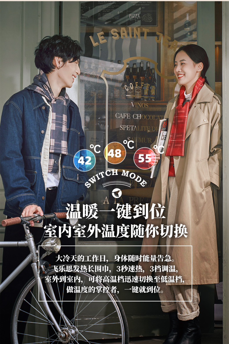 飞乐思智能电发热围巾女男秋冬英伦百搭长款保暖加厚电热围脖 英伦典雅-红