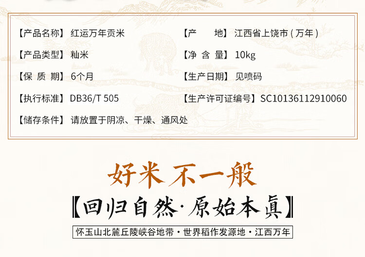 万年贡 红运贡米10kg(单位:袋) 地标产品