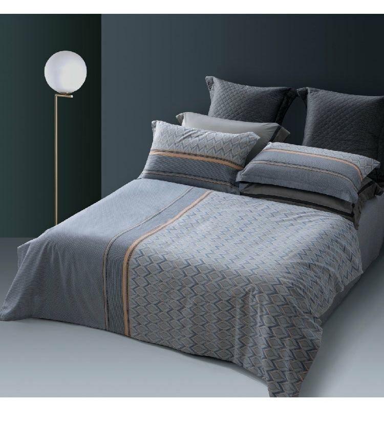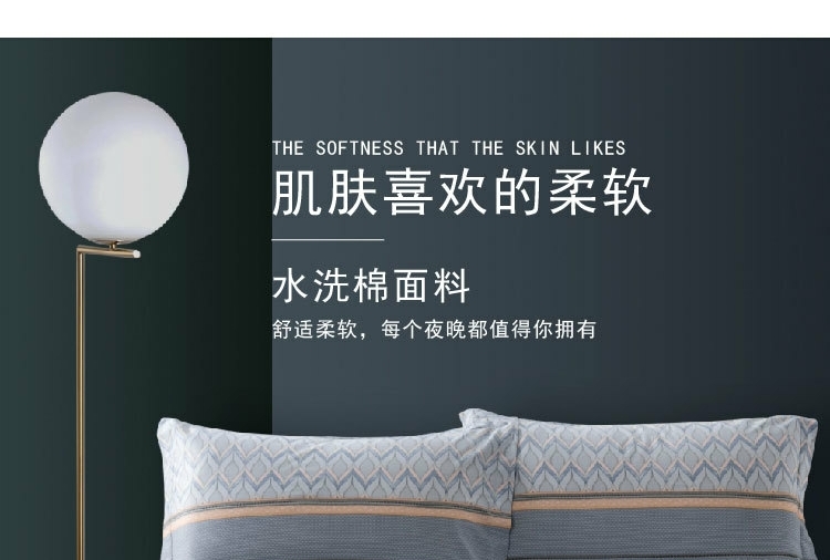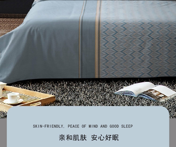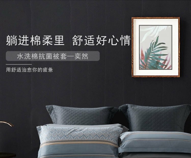 水星家纺全棉抗菌四件套220*240cm奕然/套 灰色