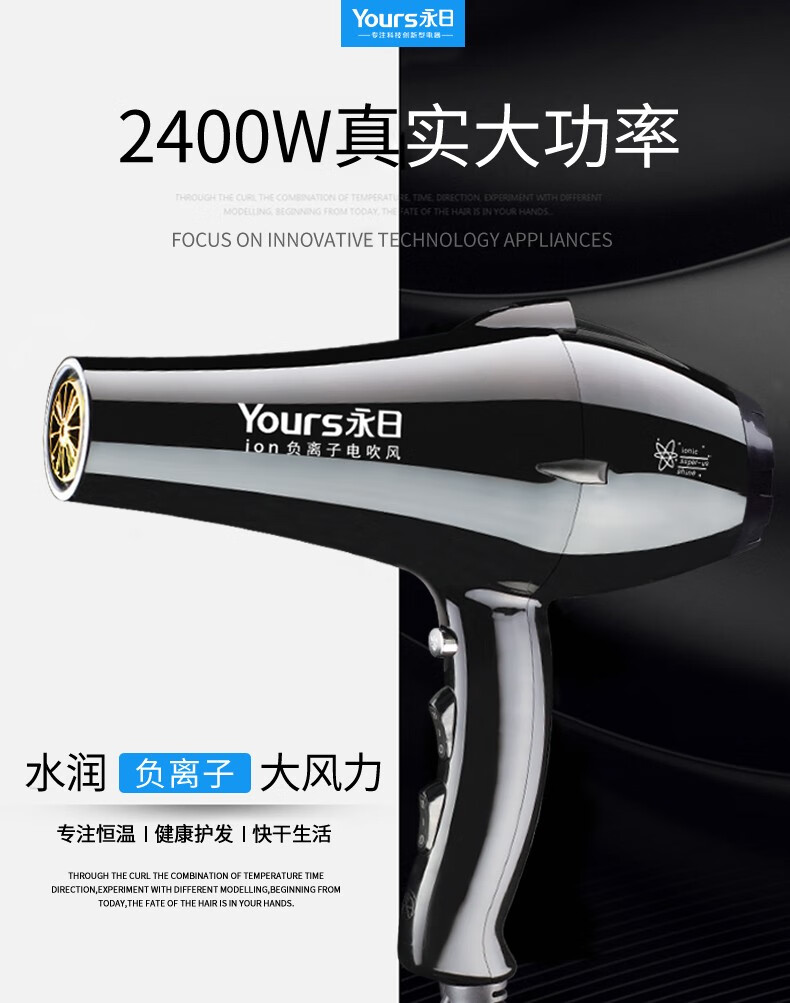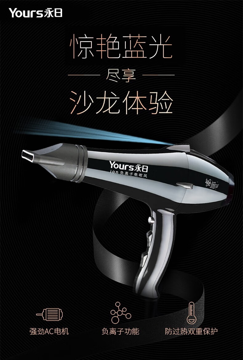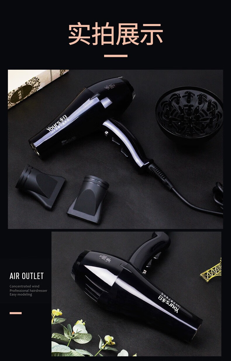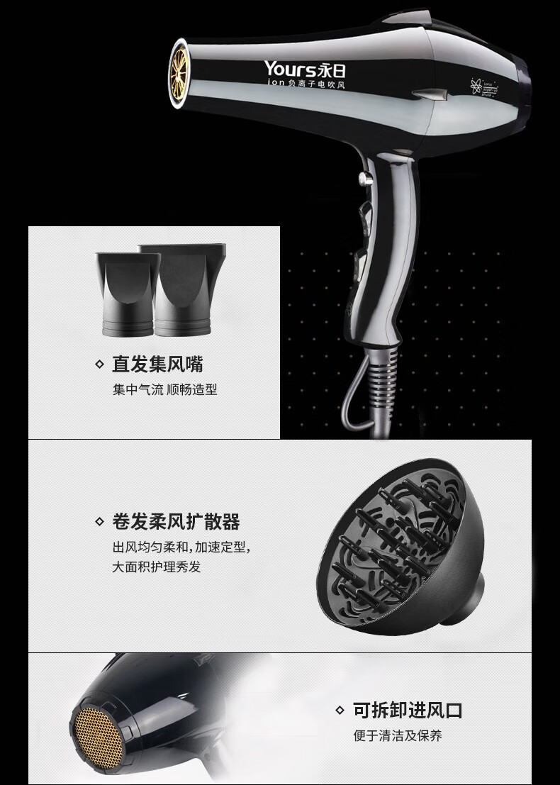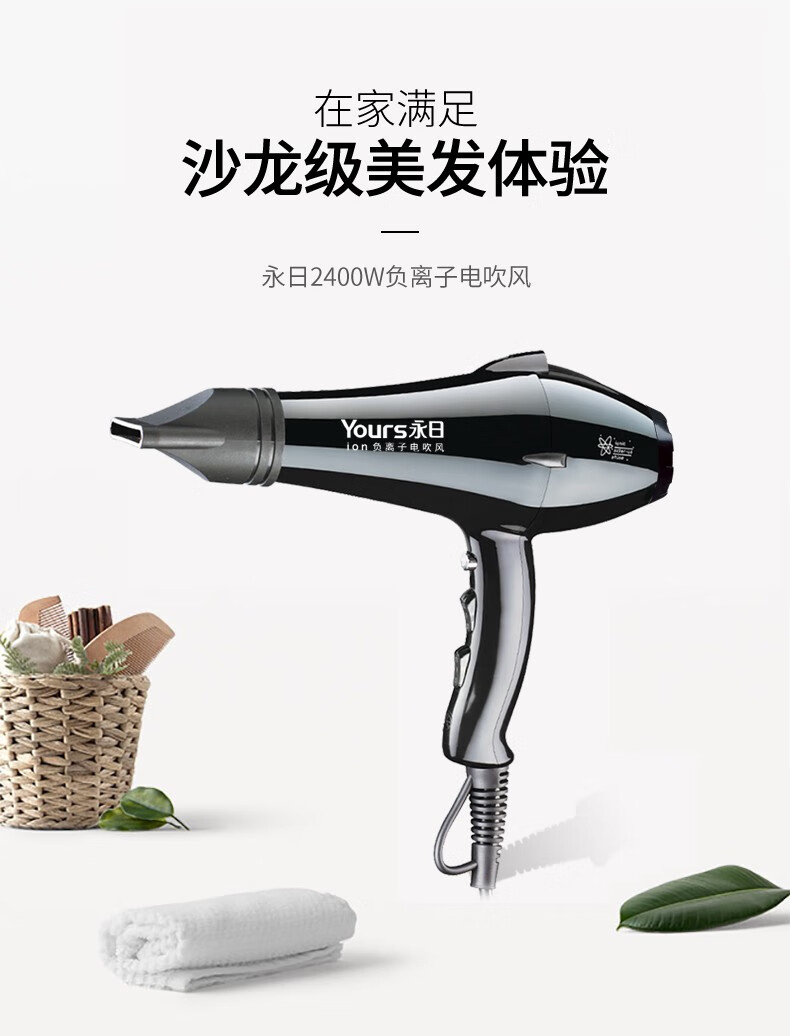 永日(YongRi)2400W蓝光负离子大功率电吹风机发廊专业级理发店家用吹风筒YR8638 黑色 黑色