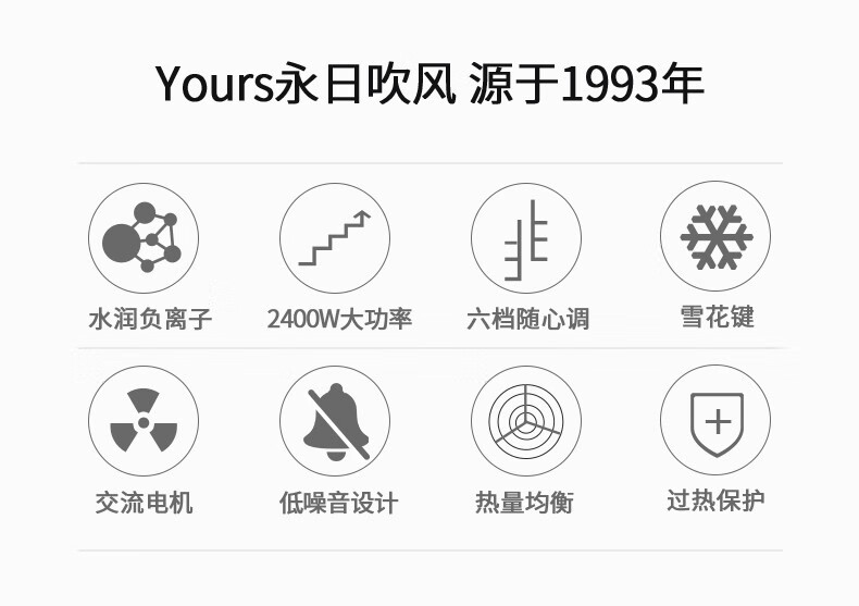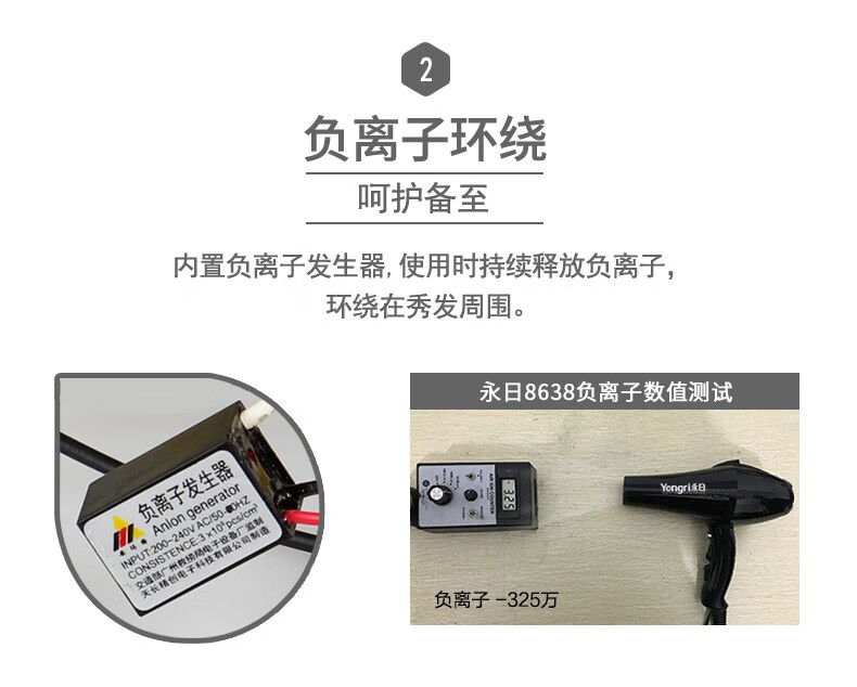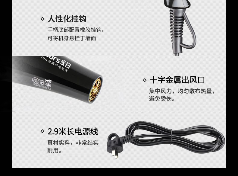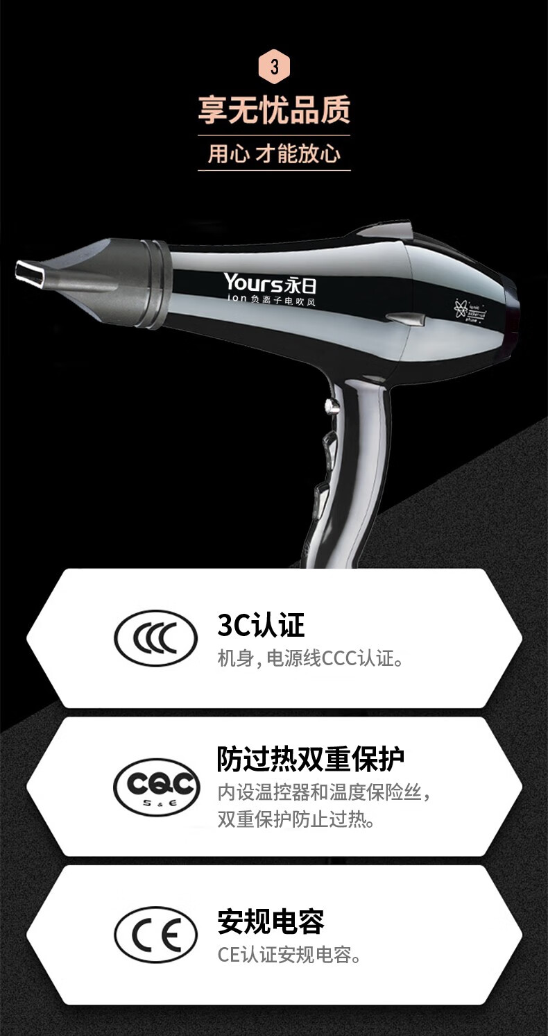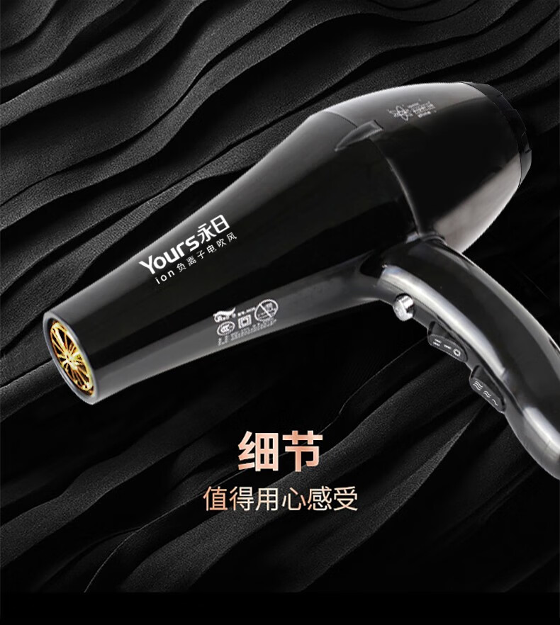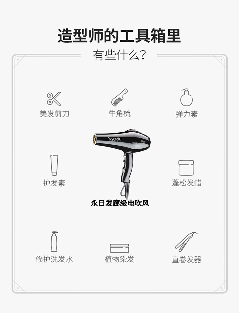 永日(YongRi)2400W蓝光负离子大功率电吹风机发廊专业级理发店家用吹风筒YR8638 黑色 黑色