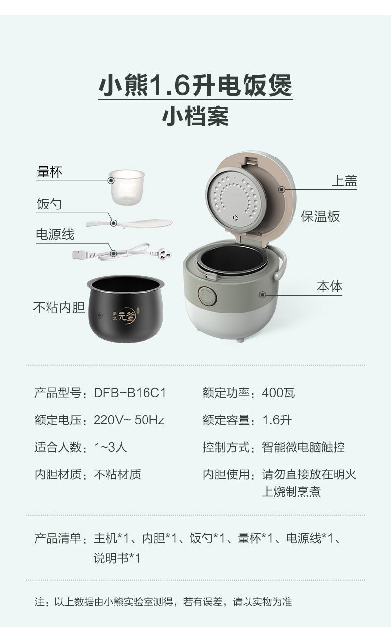 小熊(Bear)电饭煲1.6升 DFB-B16C1 /台 绿色