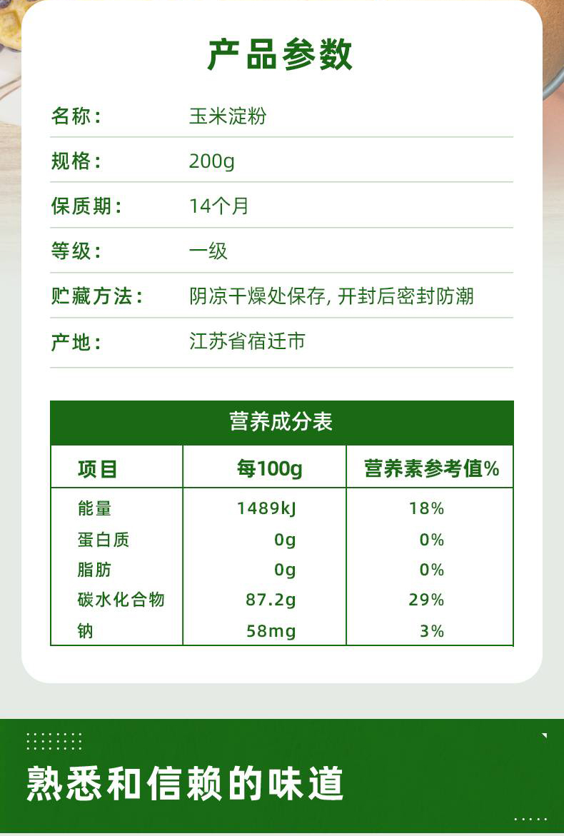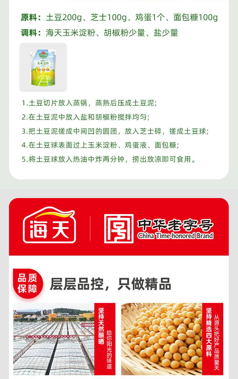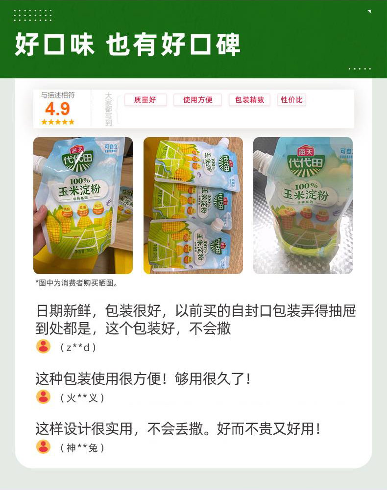 海天玉米淀粉200g(中华老字号)袋 彩色