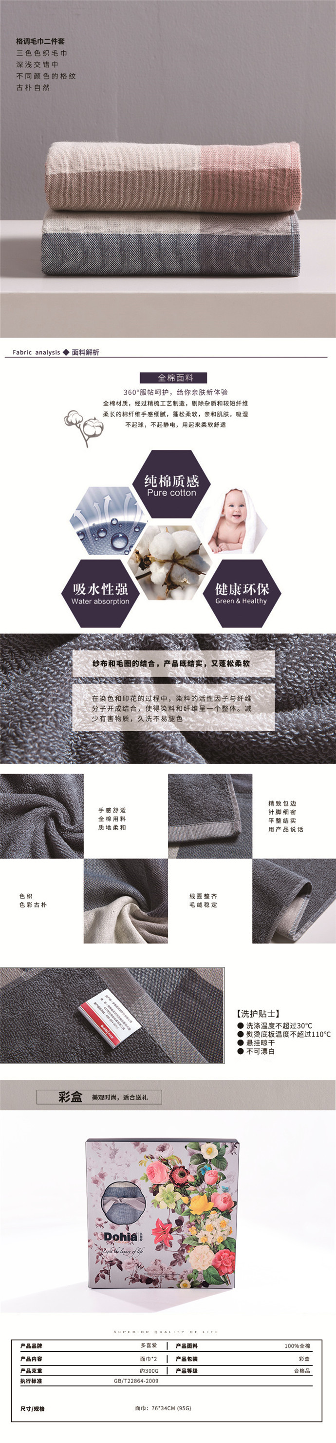 多喜爱格调毛巾两件套 76*34CM*2 混色