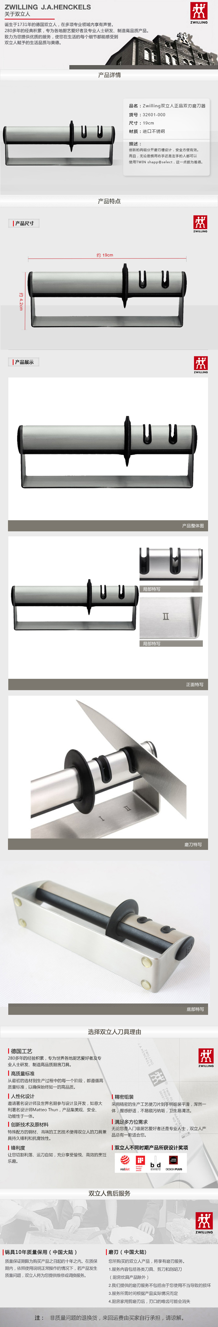 双立人家用双段定角定位磨刀器32601-000 不锈钢色 不锈钢色