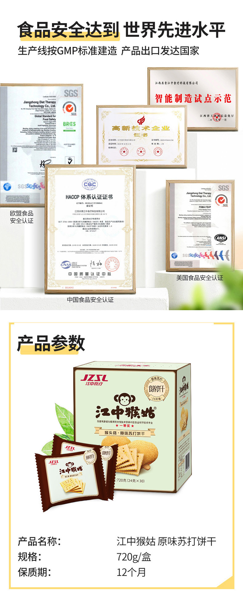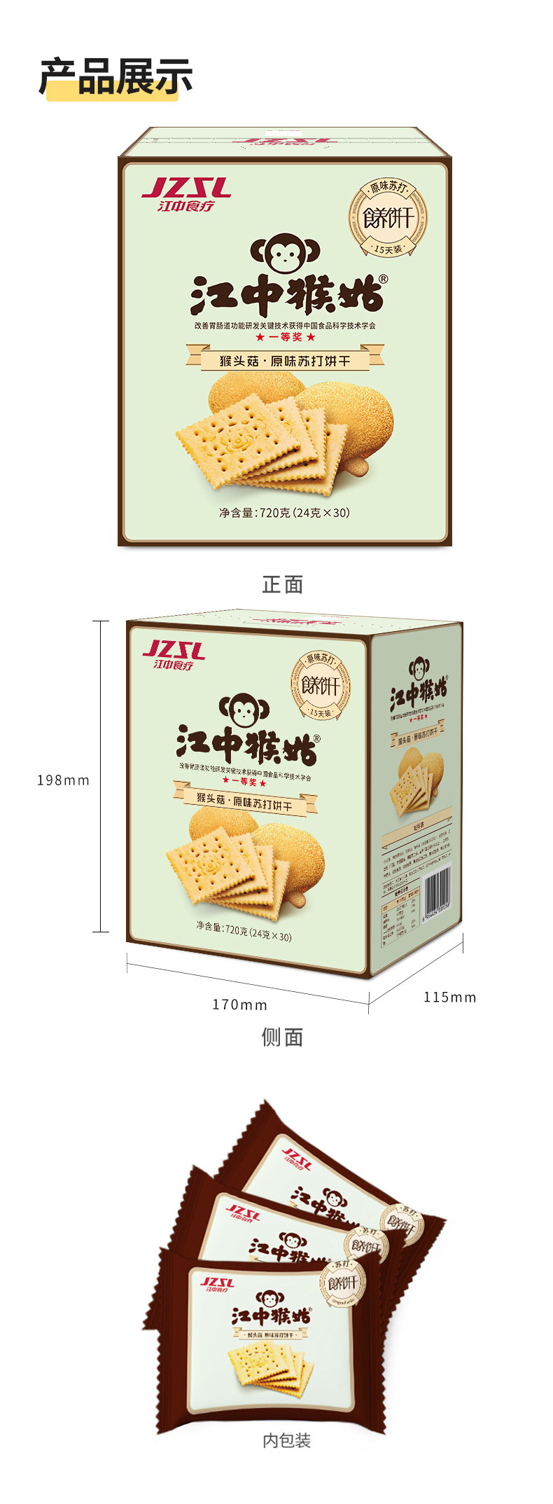 江中猴姑原味苏打饼干720g 麦饭石