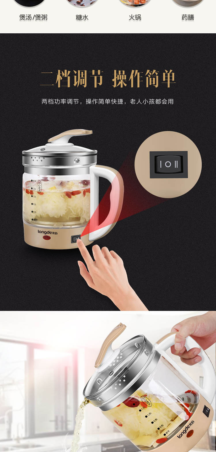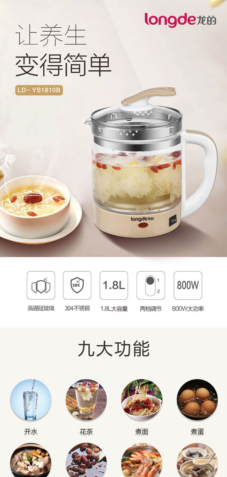 龙的(longde) LD-YS1810B养生壶 单个装 混色
