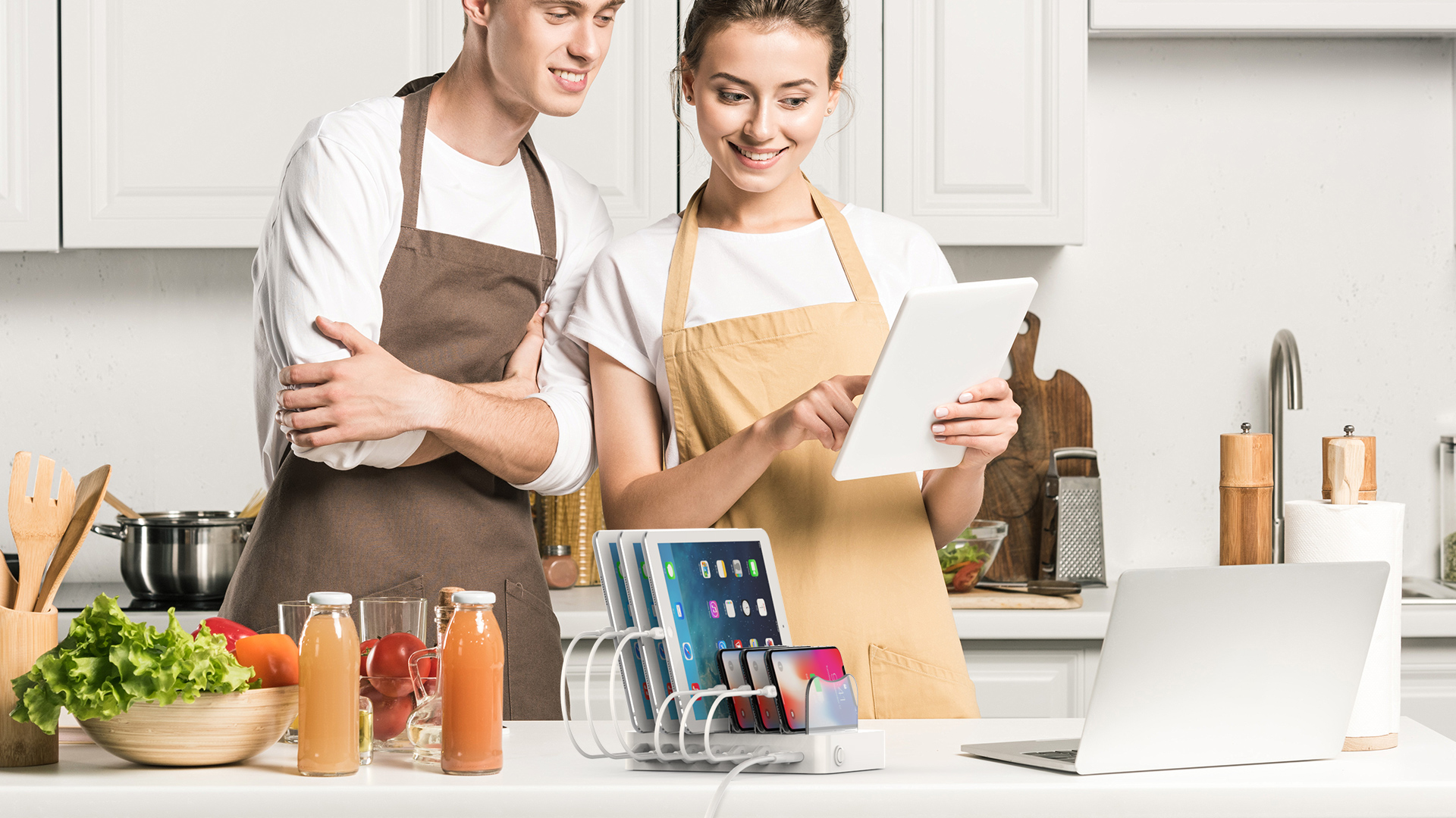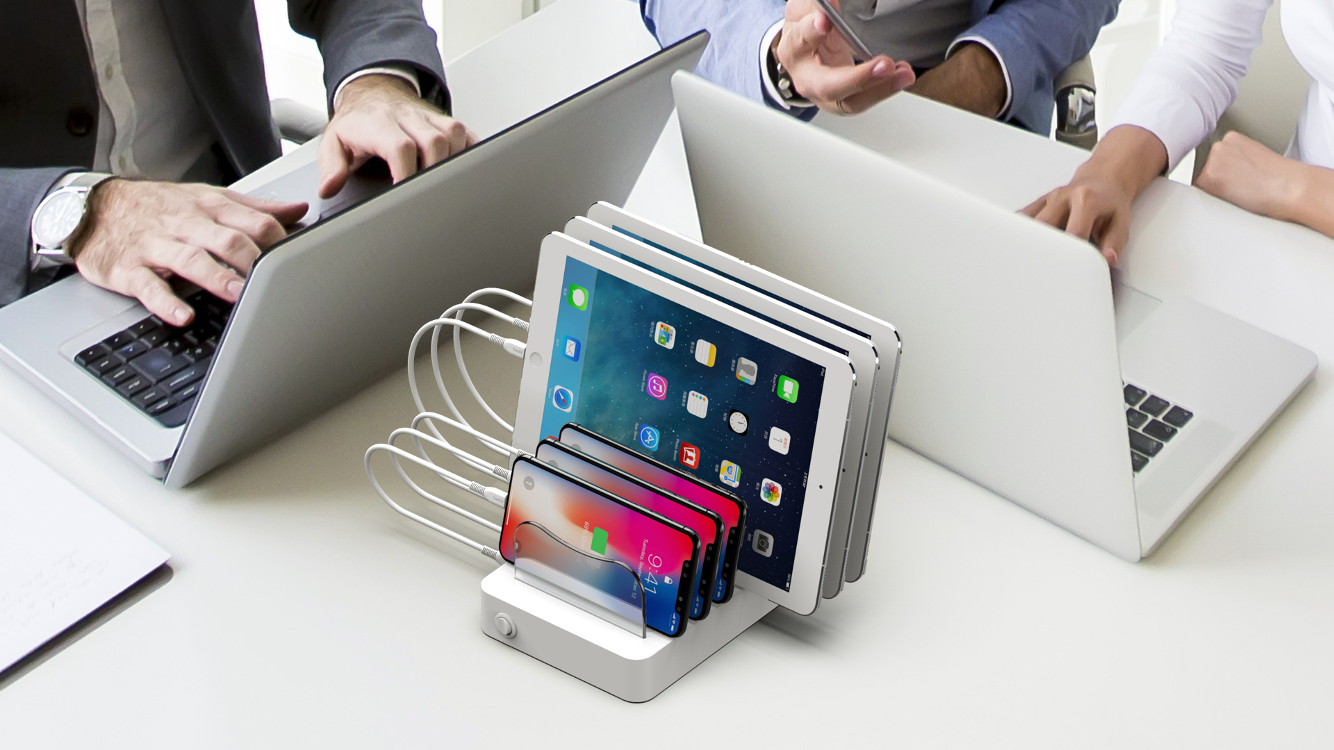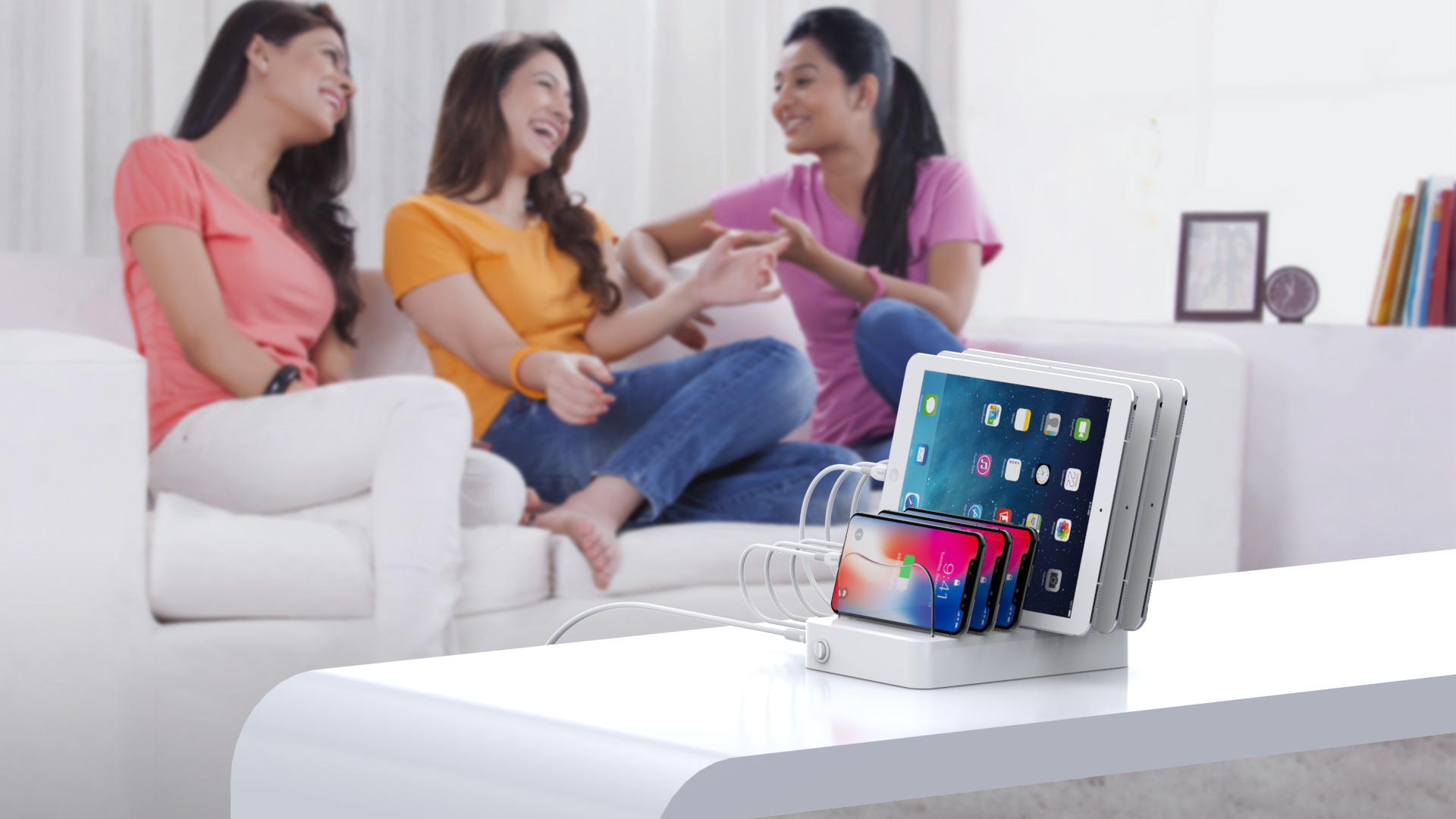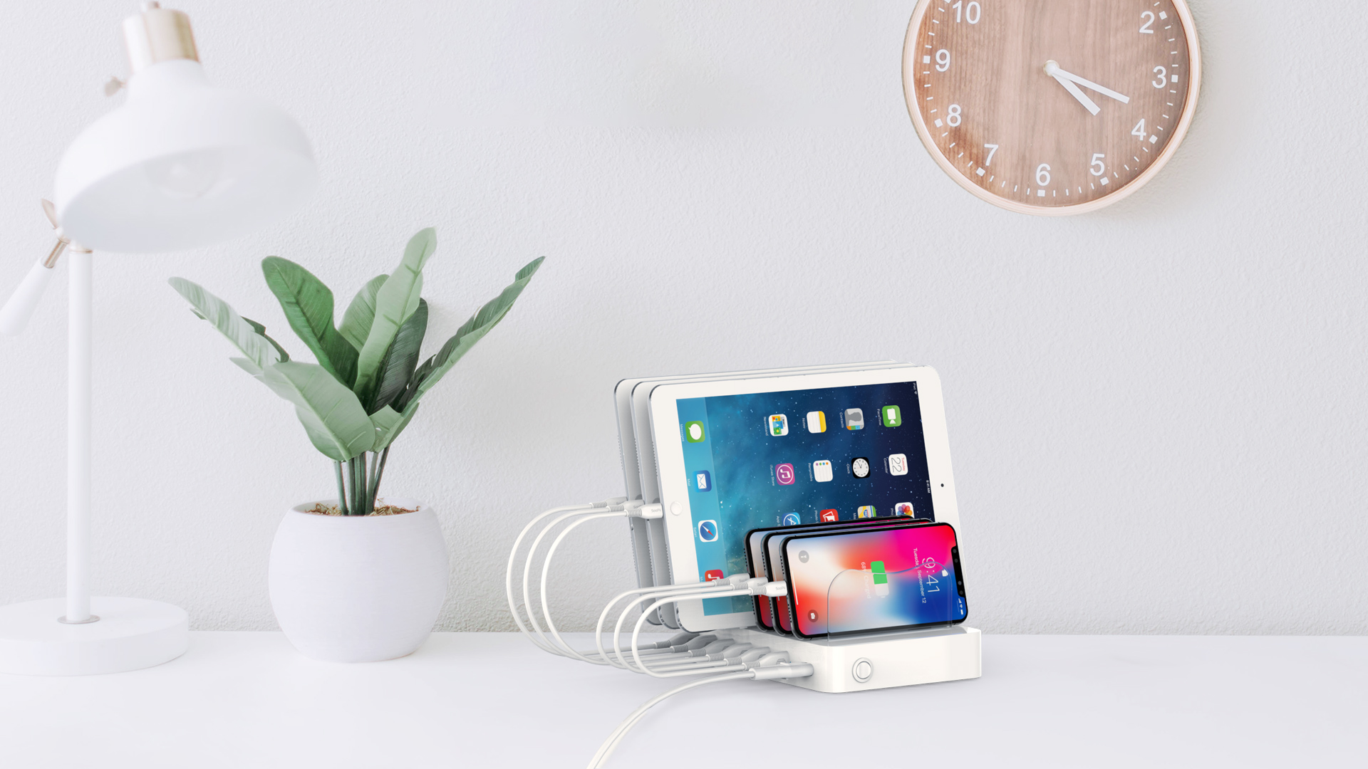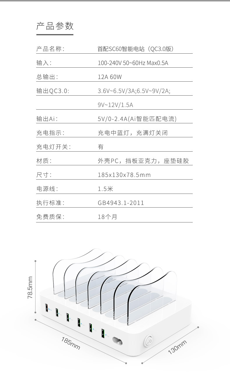 soopii cs60多口USB充电站QC3.0充电器桌面手机1.5m长快充多孔苹果安卓通用智能家居办公/个 白色