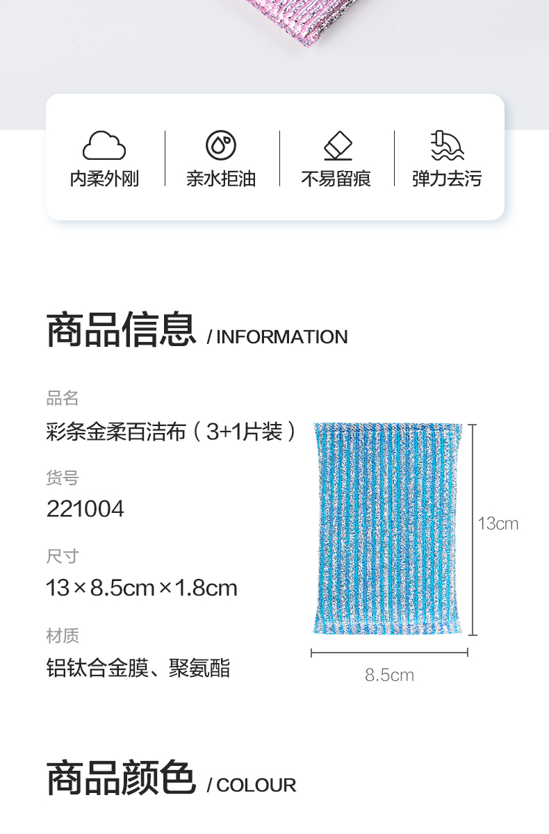 茶花彩条金柔百洁布洗碗布(3+1片装)221004 彩条金多色