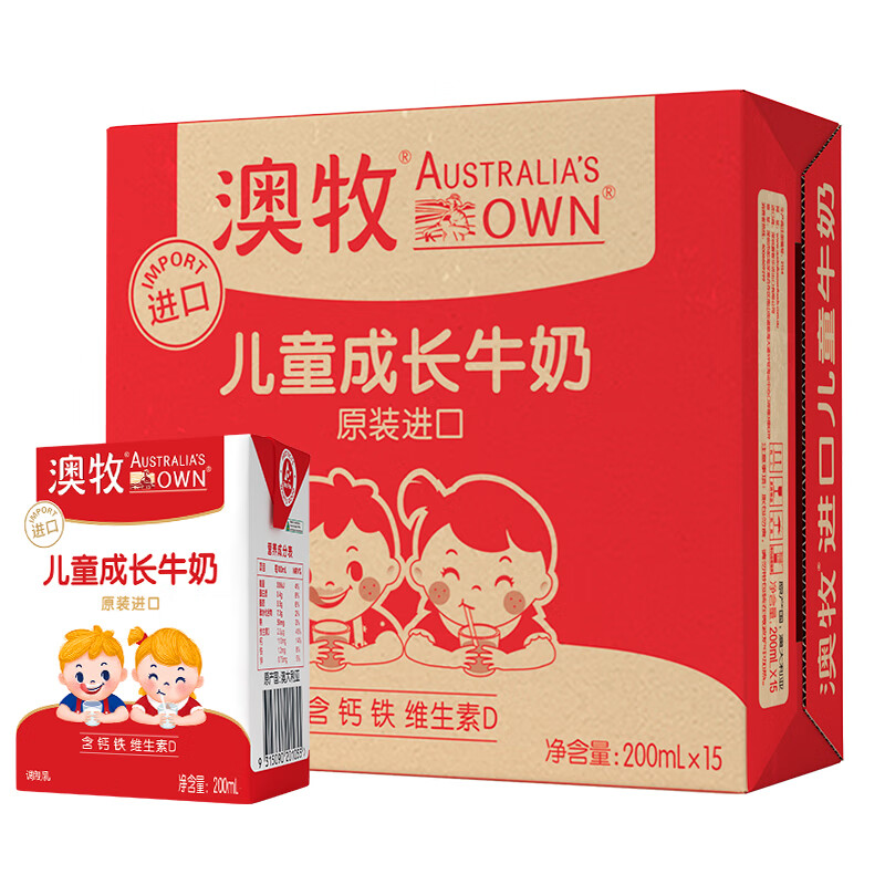 澳牧儿童成长牛奶15*200ml 箱 红色