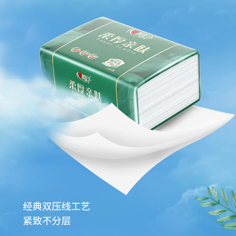 心相印柔厚亲肤抽纸 3层100抽*3包DT100/新老包装随机发货(单位:提) 绿色