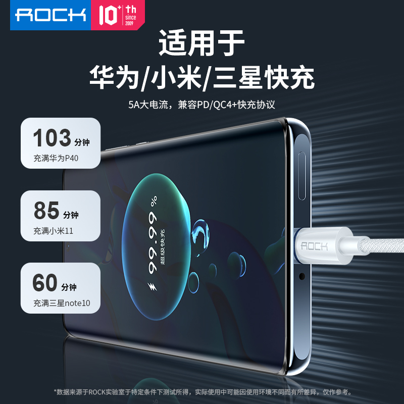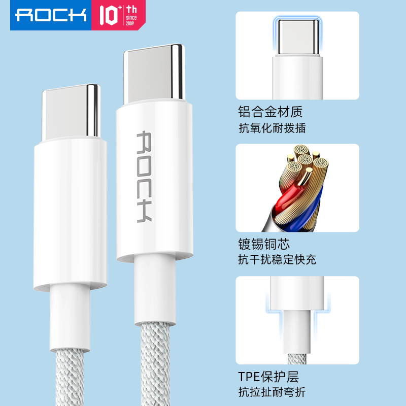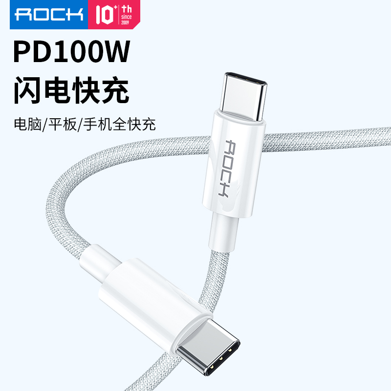 ROCK R6 Typec 100W PD快充数据线 L=100CM RCB0826 灰白色