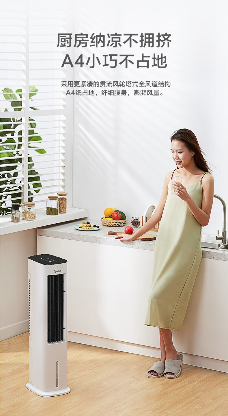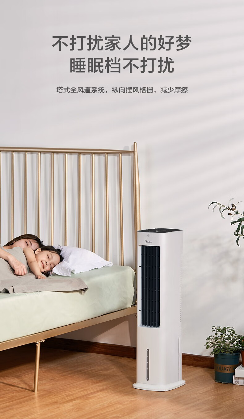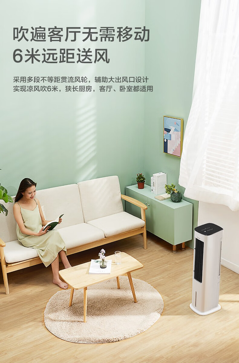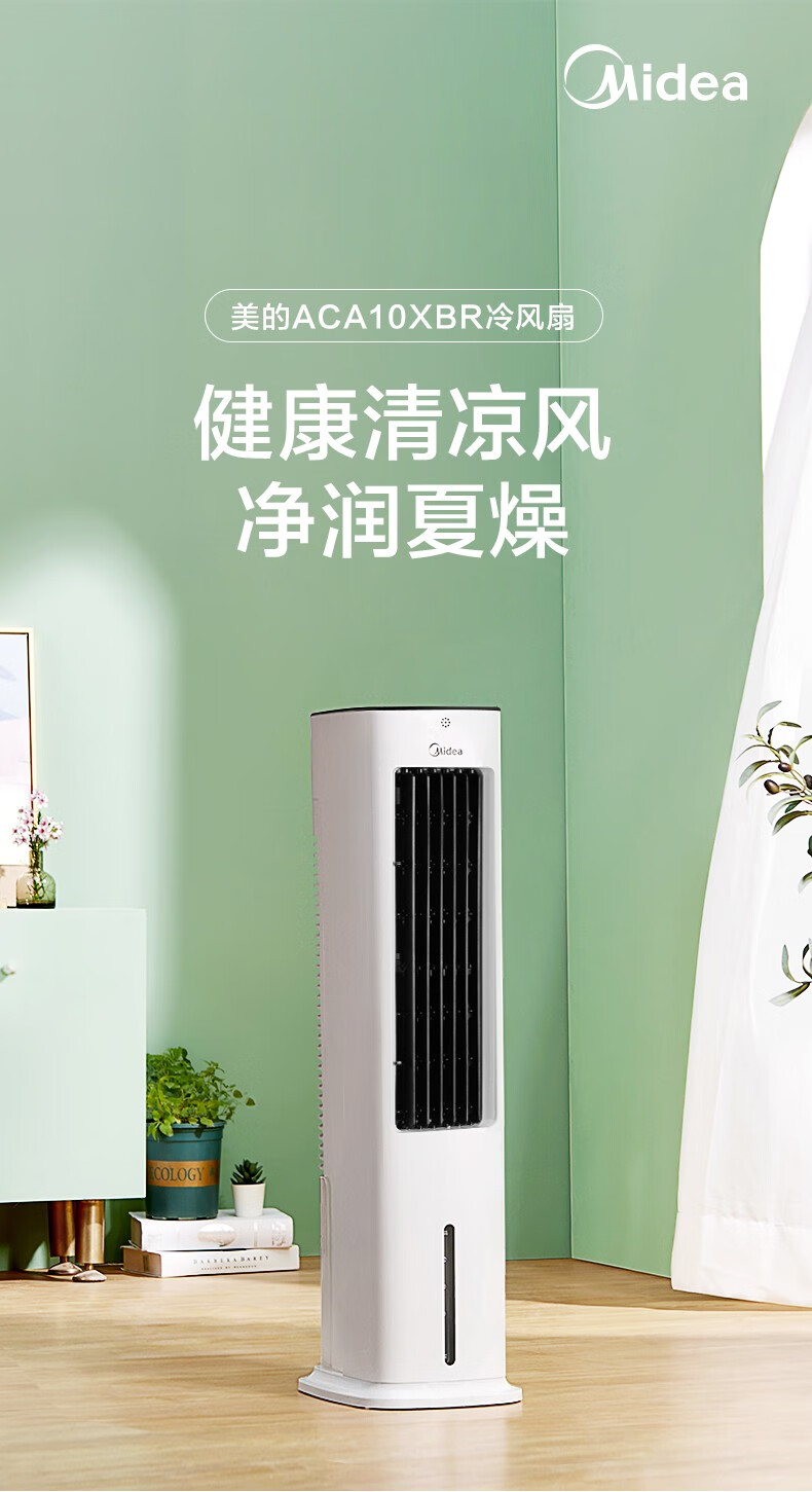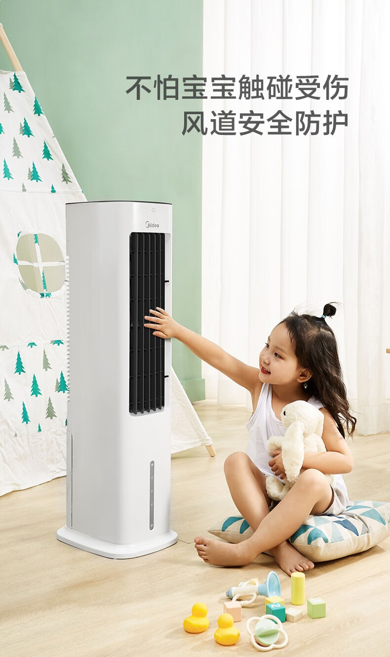 美的 Midea ACA10XBR遥控定时空调扇低音落地水冷塔扇蒸发式冷风扇凉风修长机身大风量家用 白色