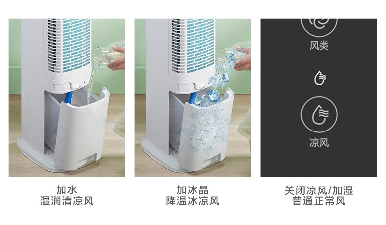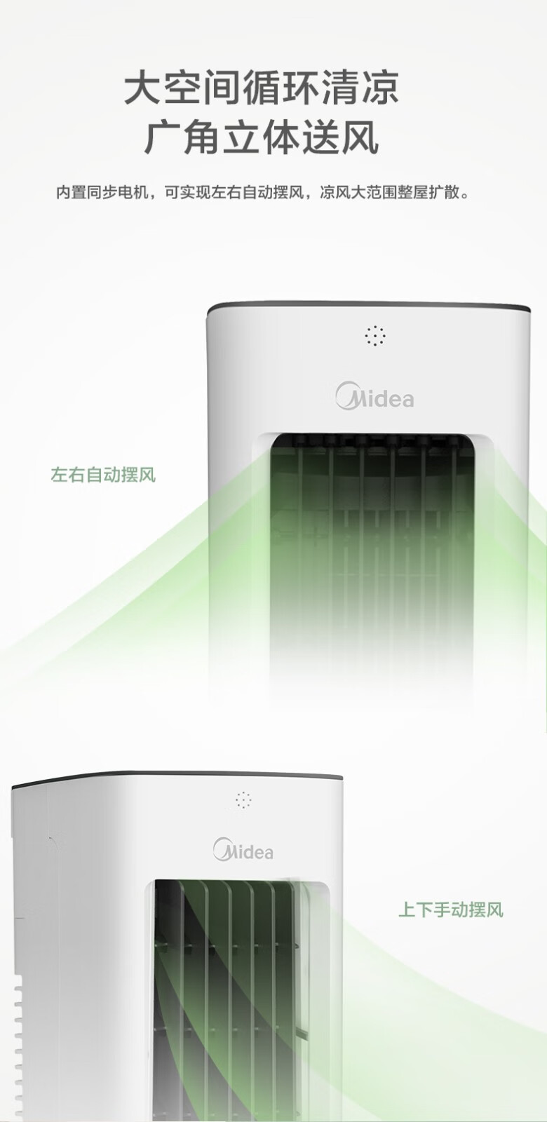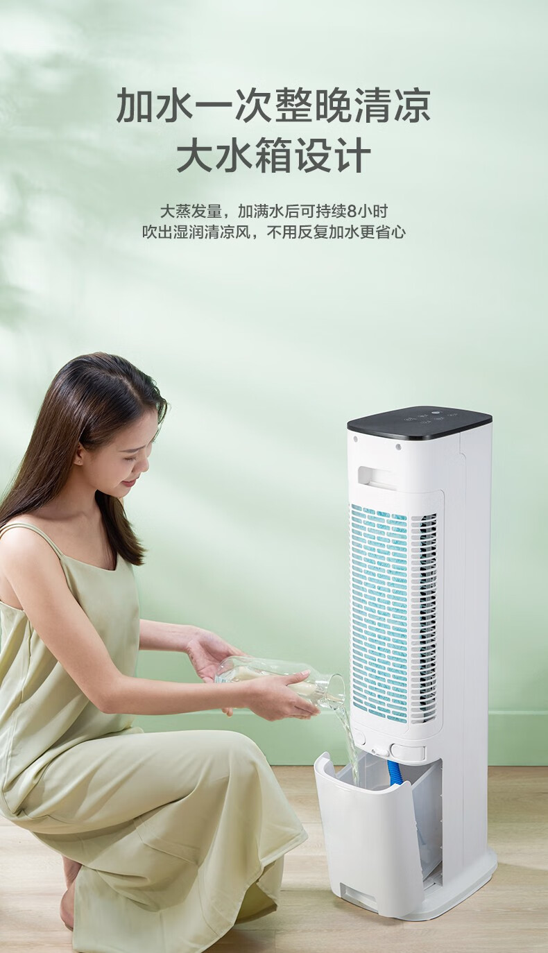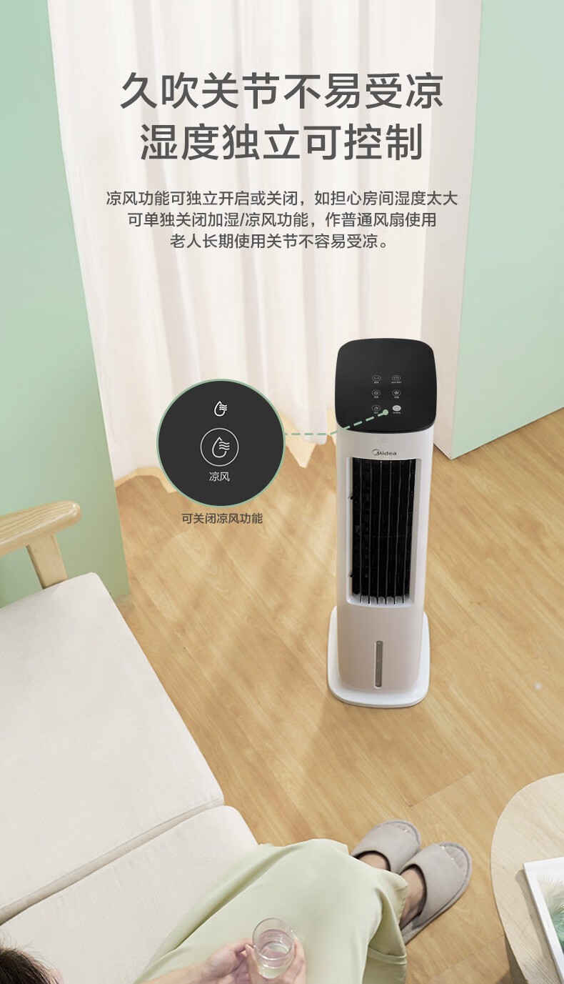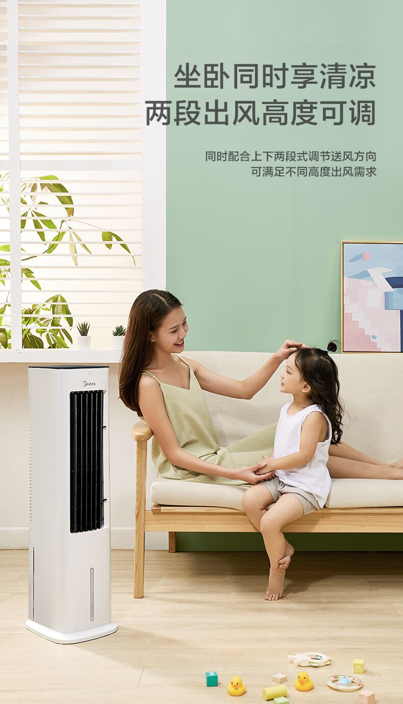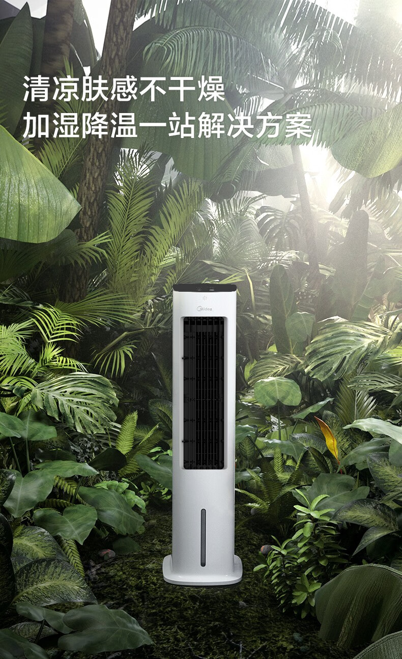 美的 Midea ACA10XBR遥控定时空调扇低音落地水冷塔扇蒸发式冷风扇凉风修长机身大风量家用 白色