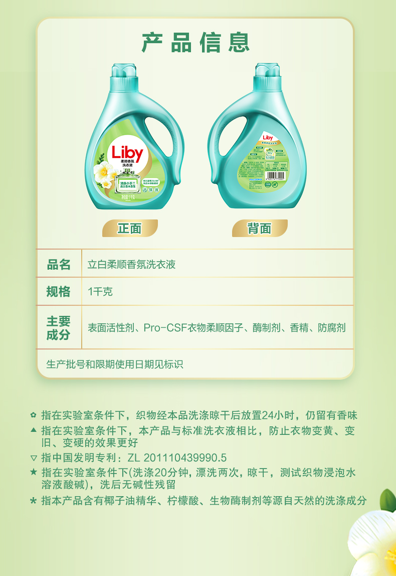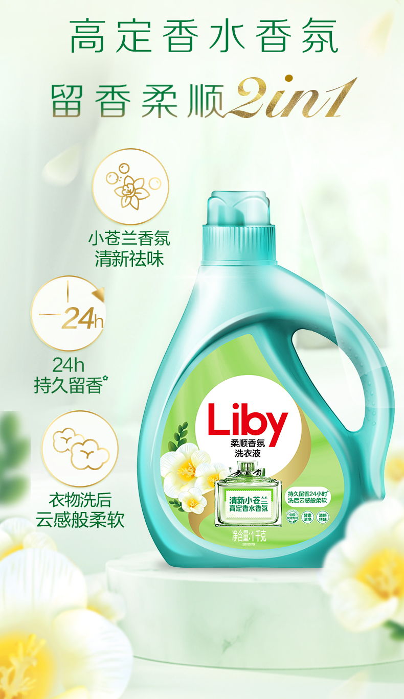 立白小苍兰柔顺香氛洗衣液1kg瓶装 白色