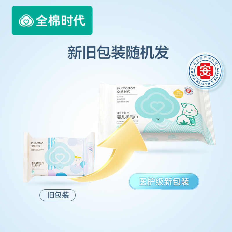 全棉时代袋装婴幼儿口手清洁专用纯棉湿巾 25片*4包*4提(单位:提) 混色