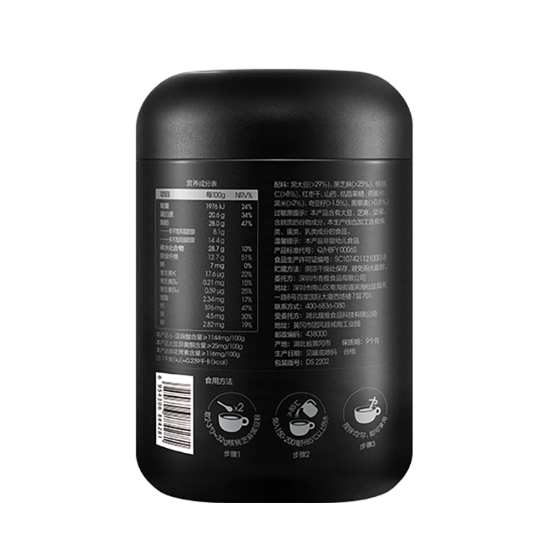 五谷磨房 黑之养黑芝麻糊大黑罐核桃芝麻黑豆粉五谷杂粮早餐代餐粉648g/罐 无色