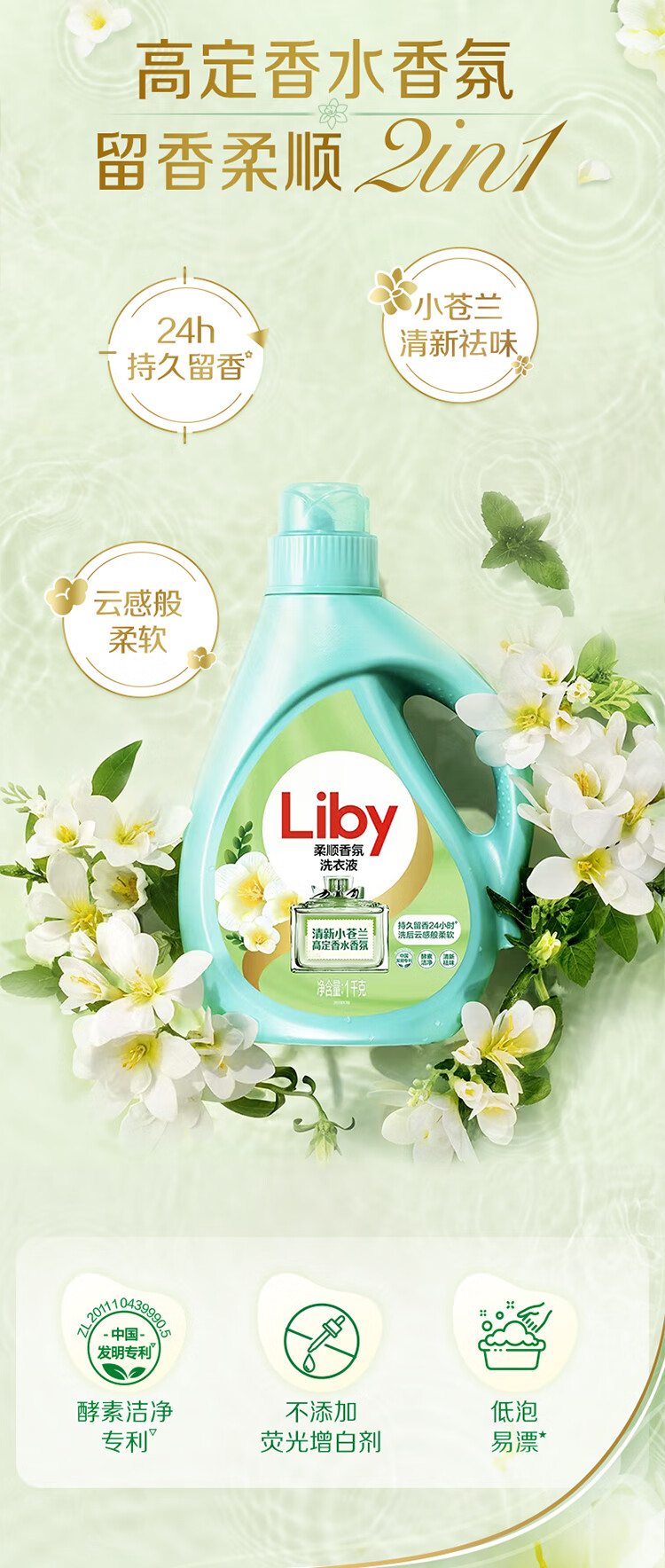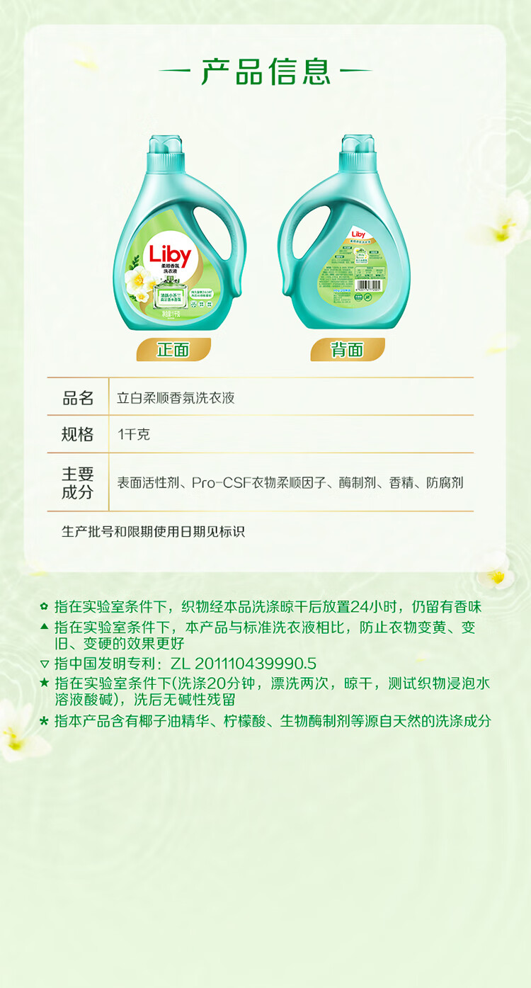 立白小苍兰柔顺香氛洗衣液1kg*12瓶 家庭装 LB20220808YJDF005(单位:瓶) 白色