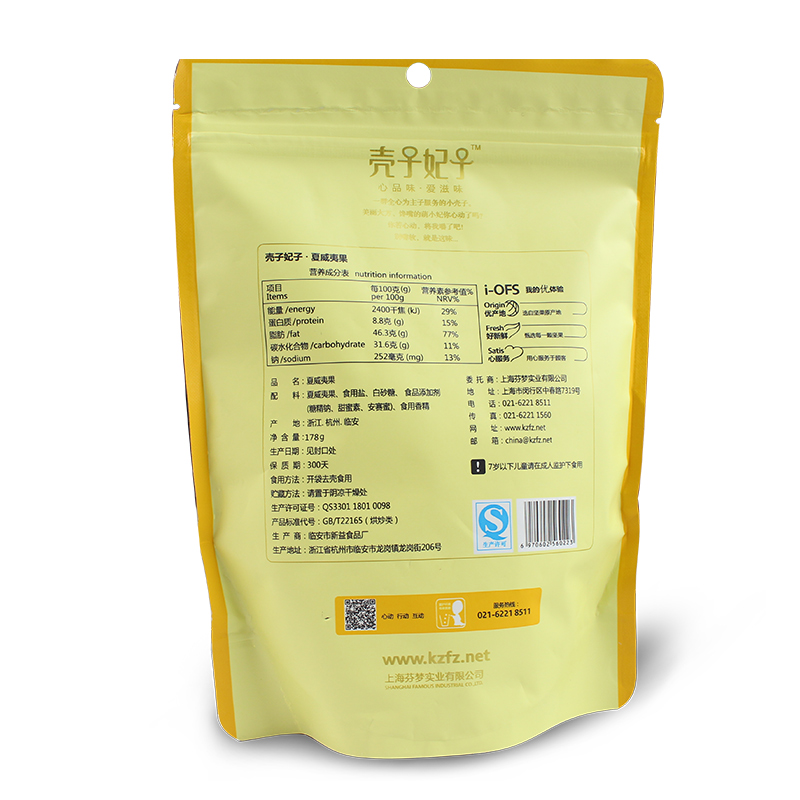 壳子妃子夏威夷果178g K1016/袋 香槟黄