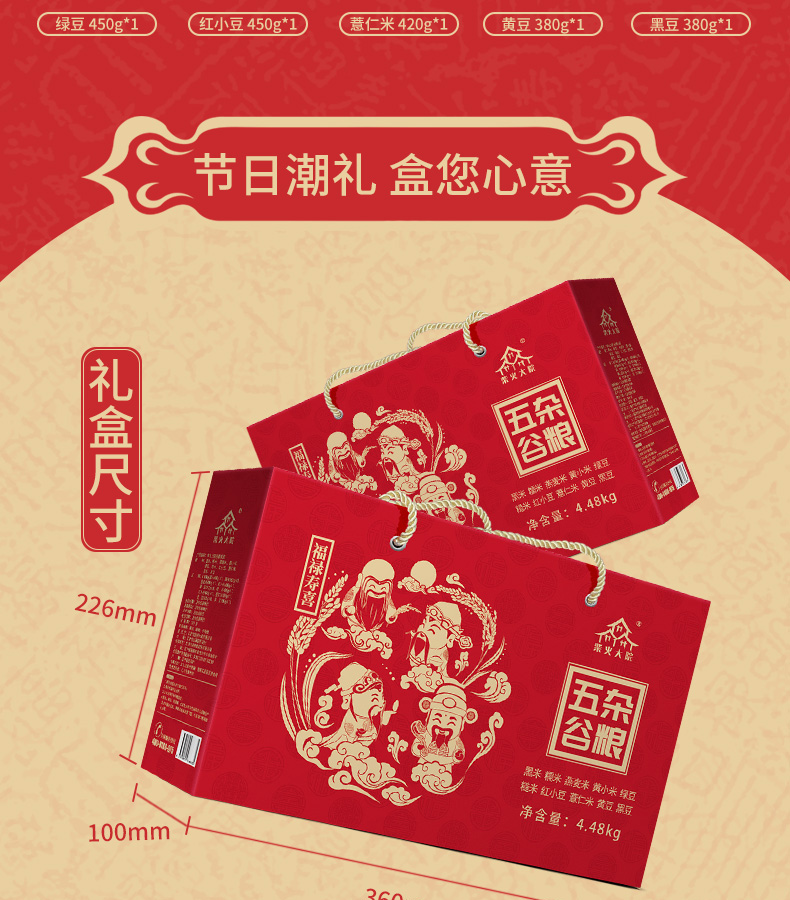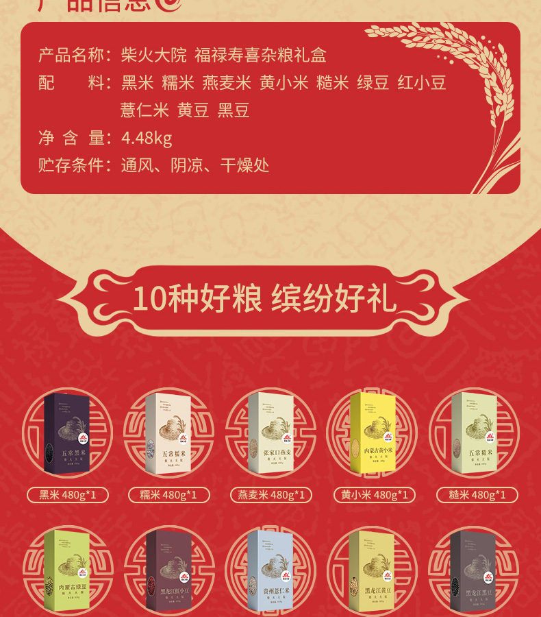 柴火大院 福禄寿喜十种杂粮礼盒4.48kg 图片色【新疆、西藏、青海、宁夏、甘肃、海南、内蒙、港澳台不发货】 红色
