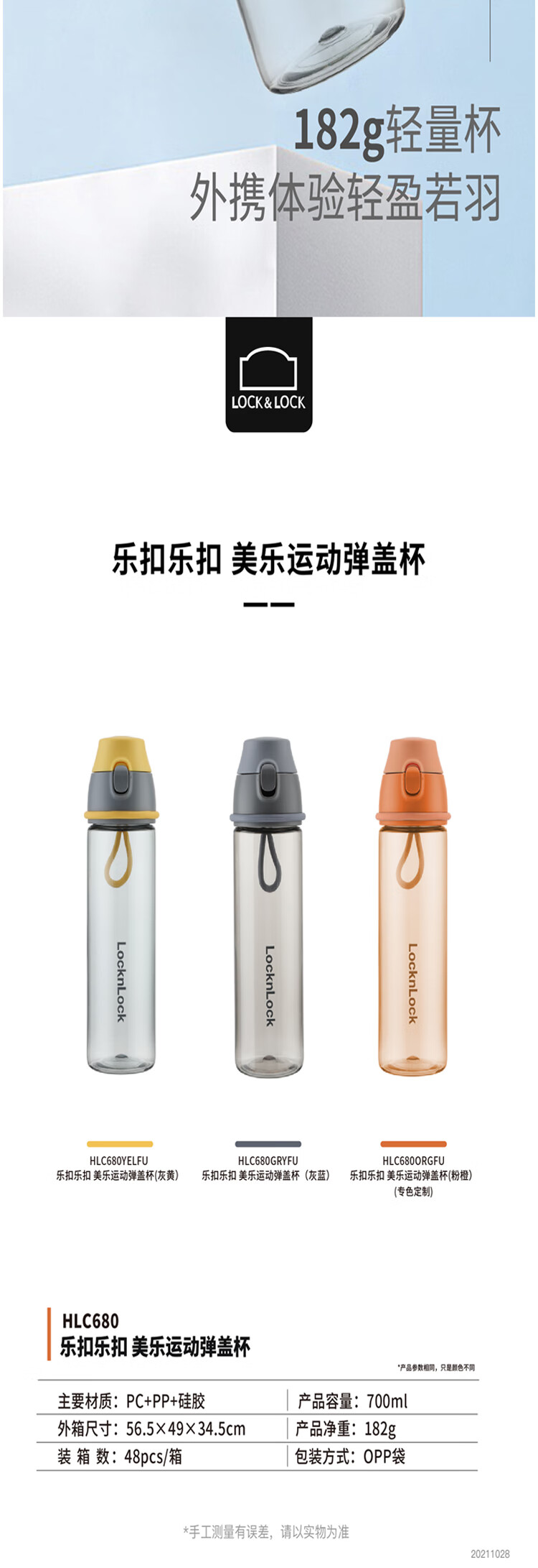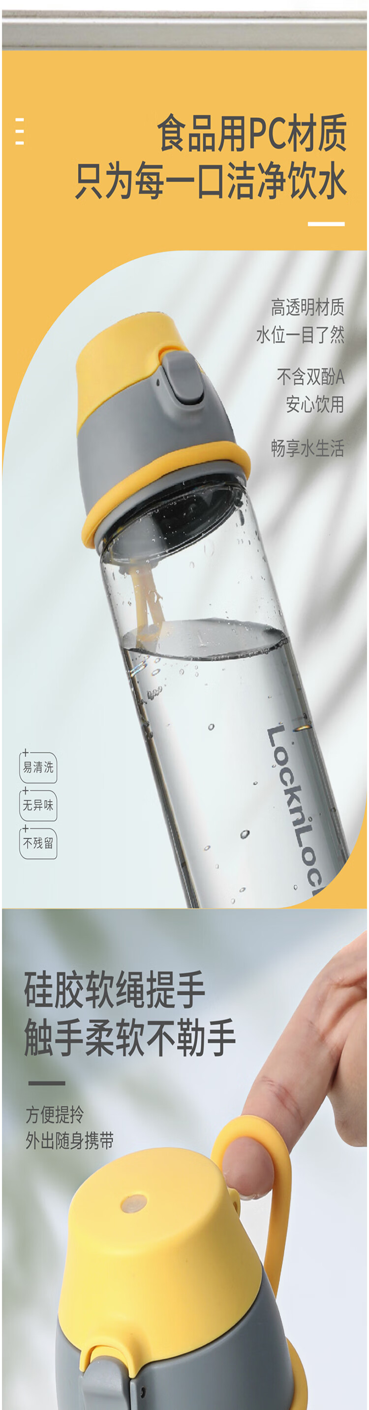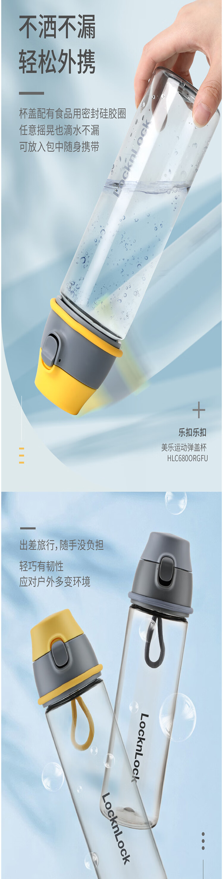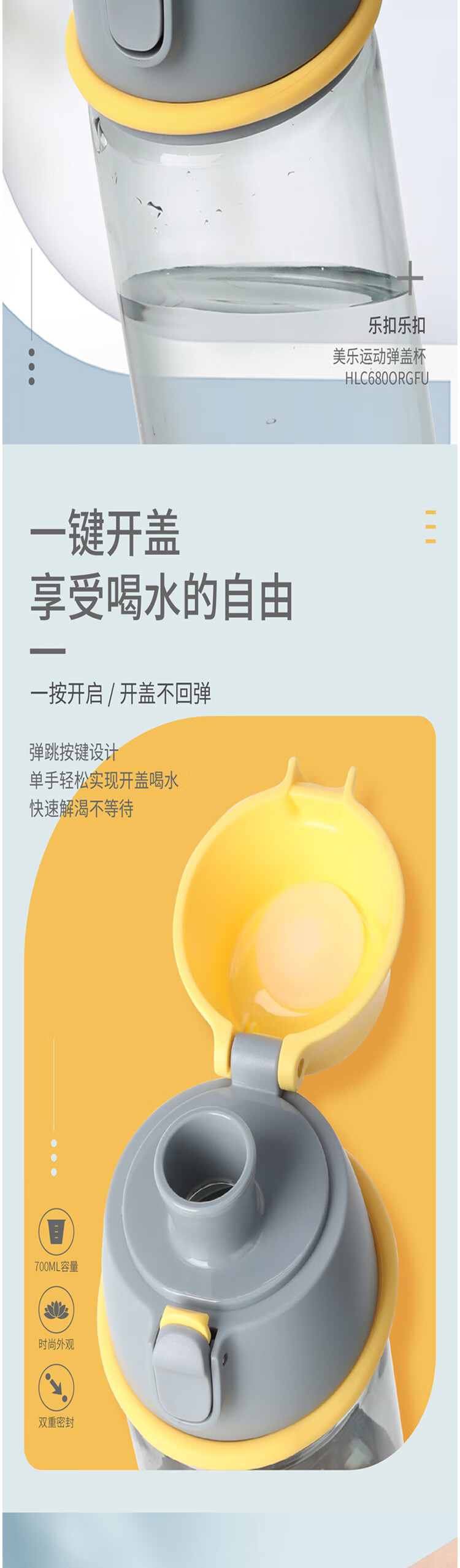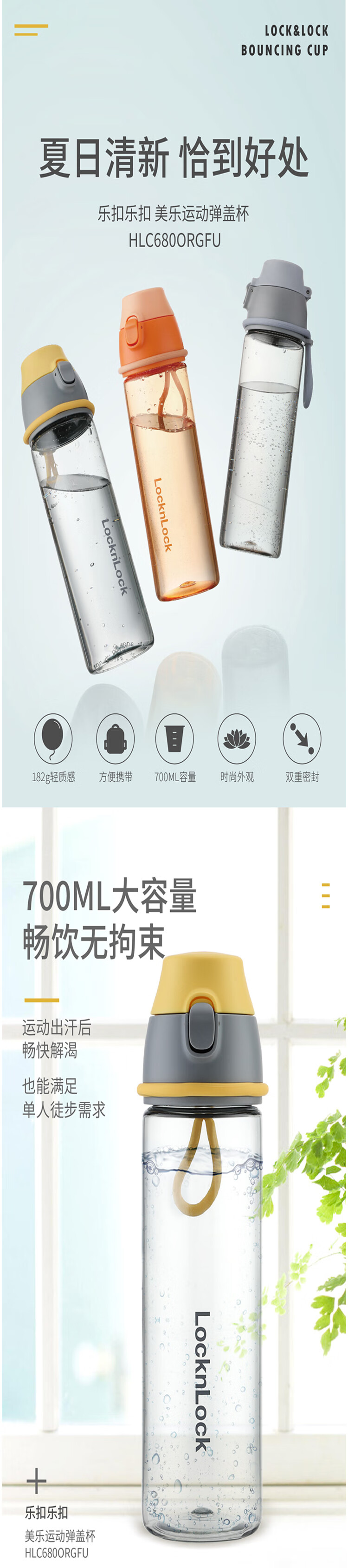 乐扣乐扣LOCK&LOCK700ml美乐塑料杯弹盖杯HLC680YELFU 灰黄色