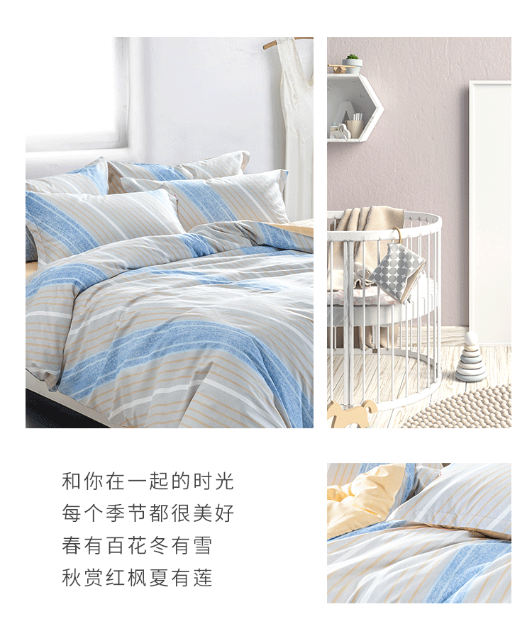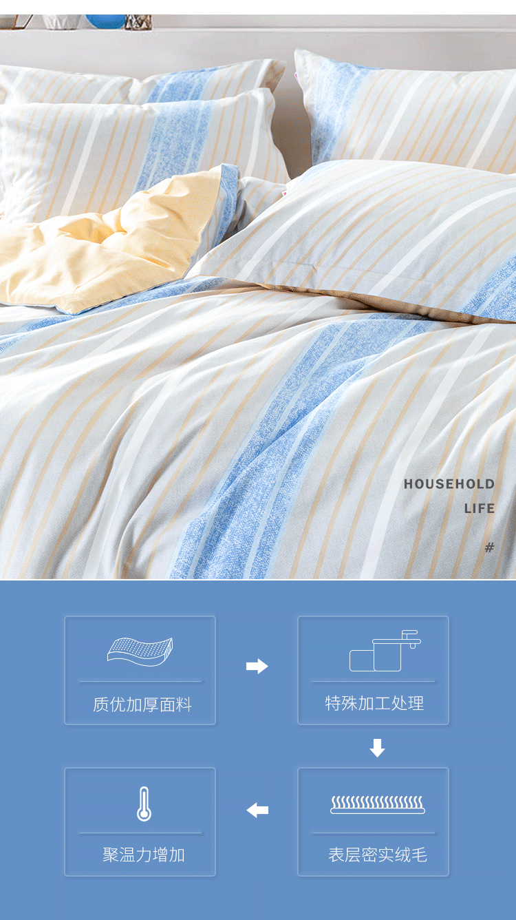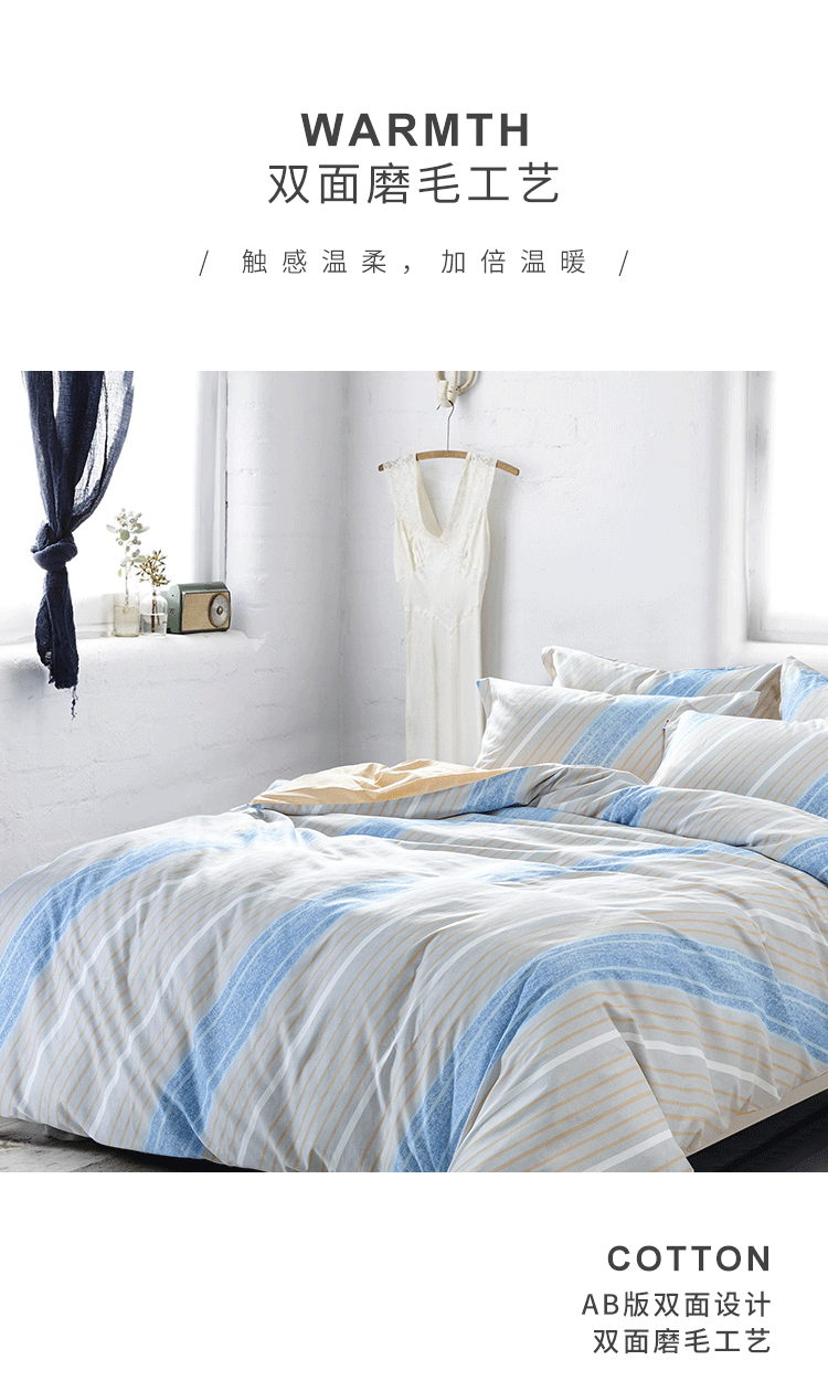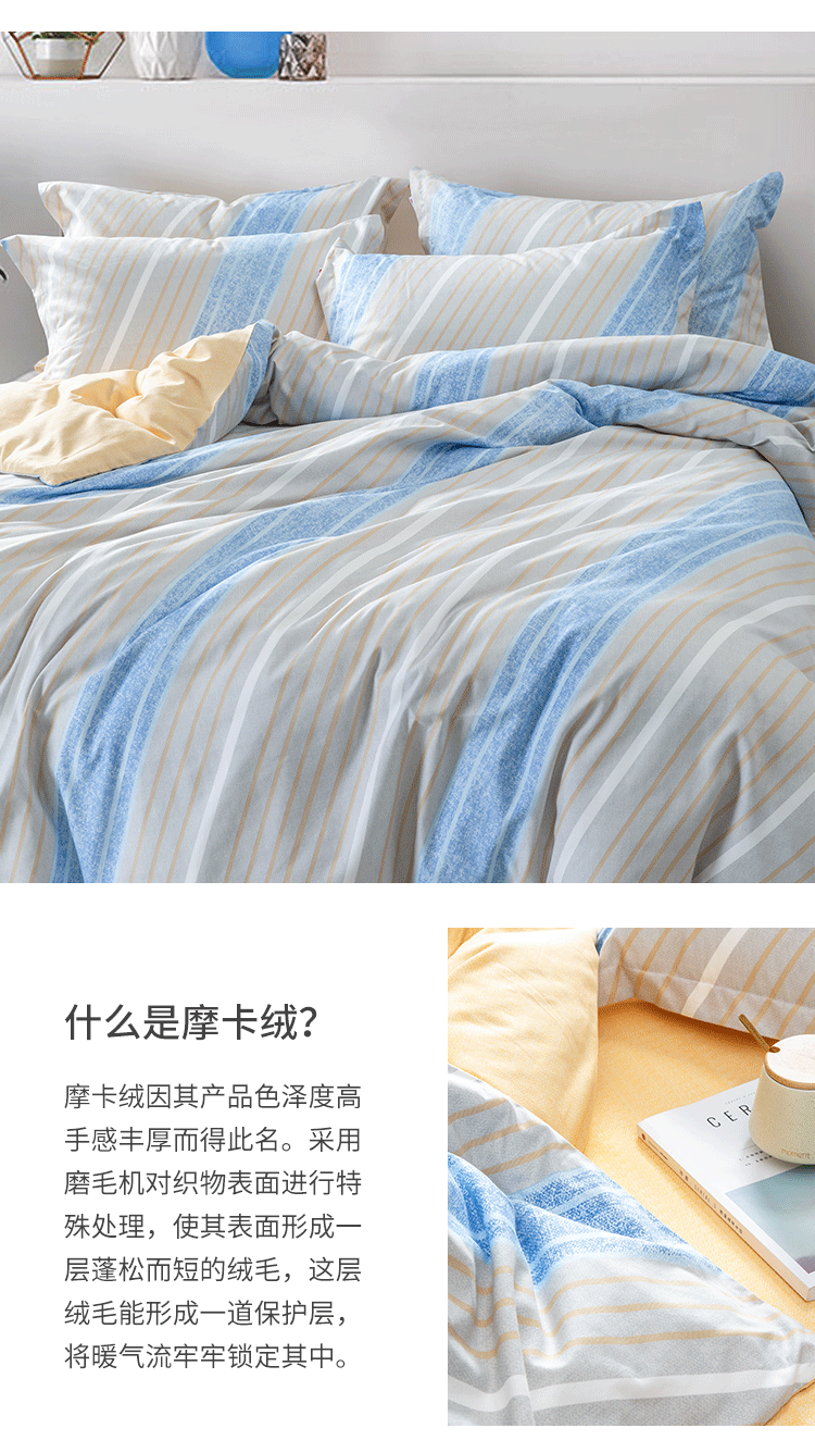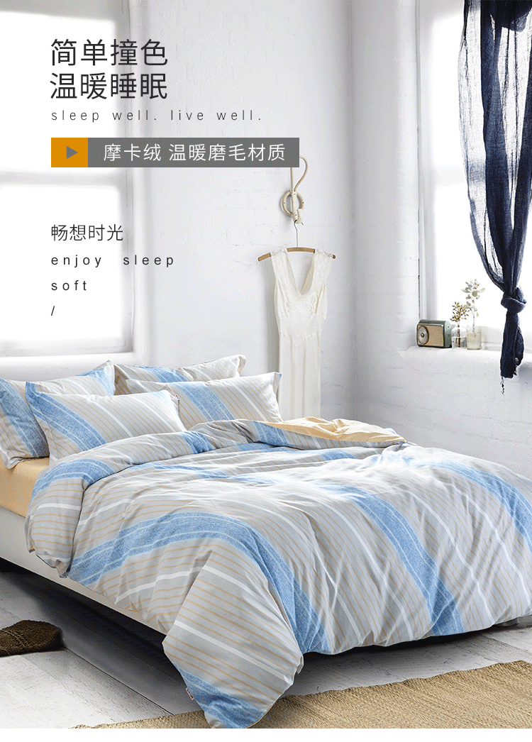 多喜爱-美眠康 摩卡绒套件 畅想时光203*229cm 蓝灰色