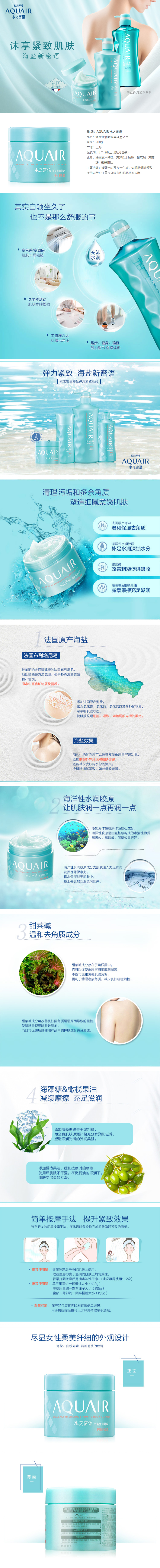 水之密语 AQUAIR 海盐弹润紧致 美体磨砂膏 200G 法国海盐去除角质 蓝色