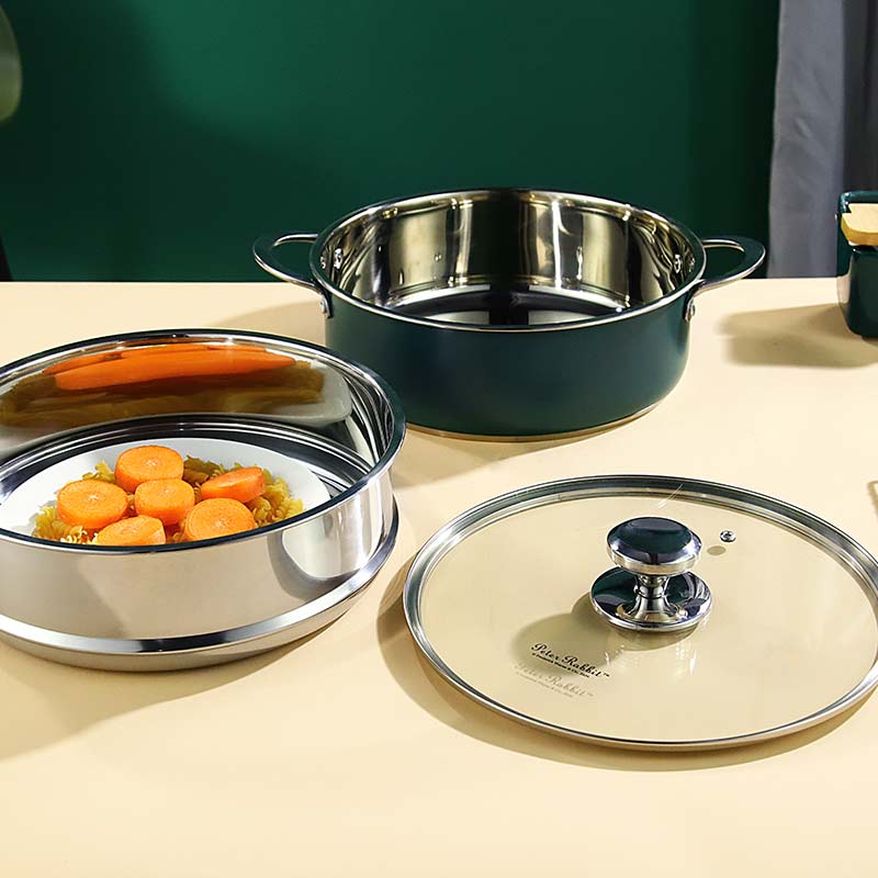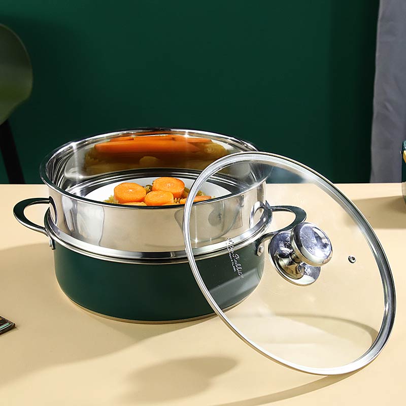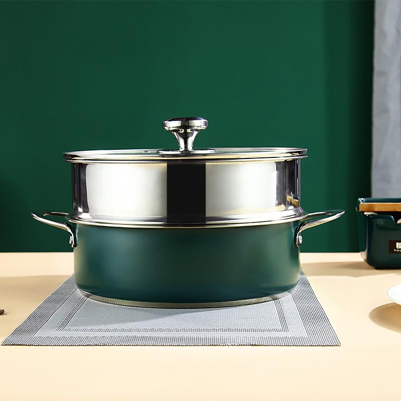 【yispot易铂】卡乐迪蒸锅YP-8056奥氏体不锈钢28cm上蒸下煮 绿色