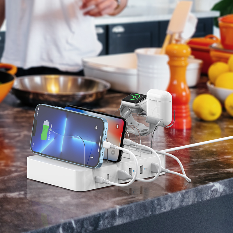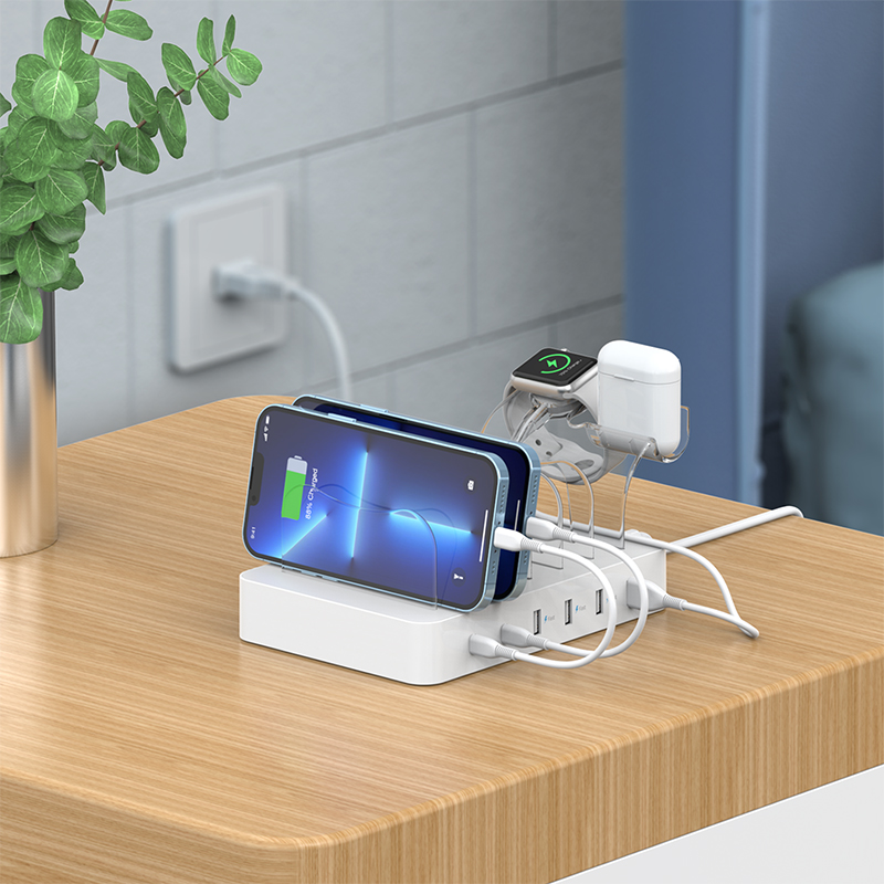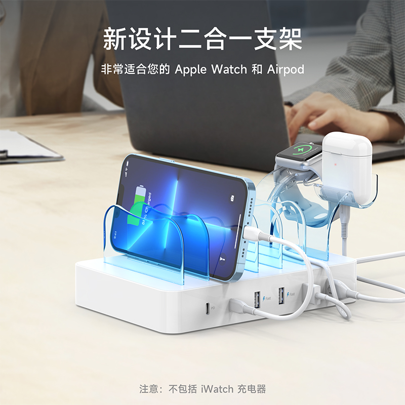 soopii cs60多口USB充电站QC3.0充电器桌面手机1.5m长快充多孔苹果安卓通用智能家居办公/个 白色